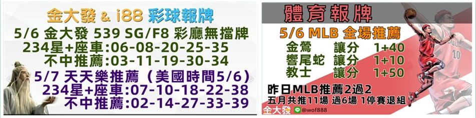 周一到周日運彩分析、539報牌天天免費看,19點提供彩球報牌,23點提供運彩報牌