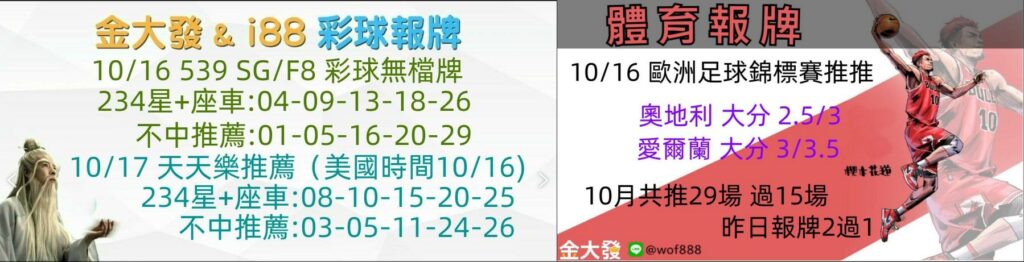 周一到周日運彩分析、539報牌天天免費看,19點提供彩球報牌,19點提供運彩報牌