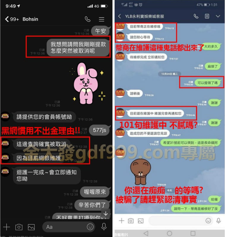 每當要提款的時候總是那麼雖小老是遇到網銀在維護?系統在維修?真是聽他在鬼扯!通常網銀維護完成之後黑網就會告訴你系統維護中無法出金,系統維護完繼續跟你瞎扯審單當中,就這樣莫名其妙的被拖了一個禮拜還沒辦法出金!不要在被拖延話術矇騙了!無期限的維護只是不出金的藉口