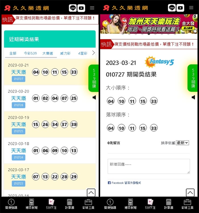 透過fb及youtube直播能免費收看天天樂抓牌影片,每支影片長度約15-20分鐘,懶的花時間了解抓牌版路過程,建議可直接拖拉影片時間點到最後,就能看到該報牌高手提供的當期天天樂熱門號碼囉~