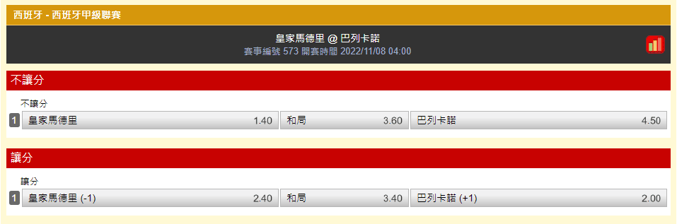 舉例:上述這場西甲的皇家馬德里對上巴列卡諾賽事編號「573」,投注單該怎麼畫呢?