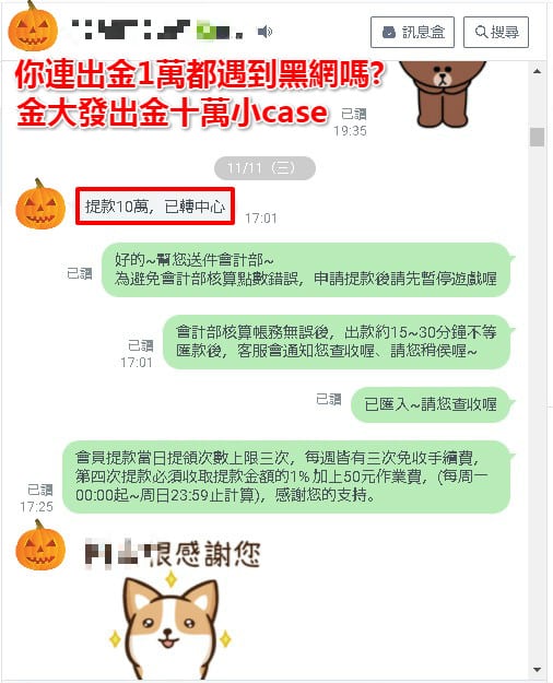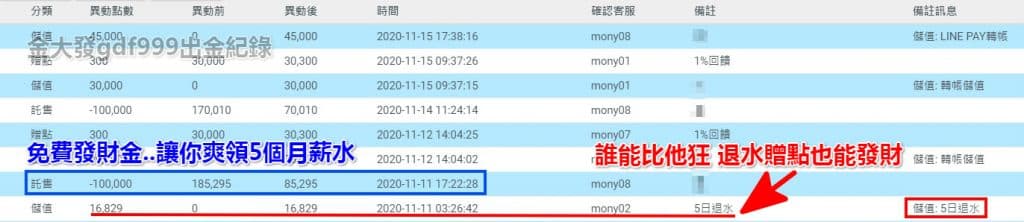 只有對話紀錄怎麼夠。金大發依然秉持有圖有真相,沒圖是假相,分分鐘匯款,讓你馬上能領出去花,不少娛樂城出金限制會員一天只能領一次,金大發一個禮拜三次免手續費,超過三次只需加收微薄服務費,想玩賺錢手遊,必須先找對平台