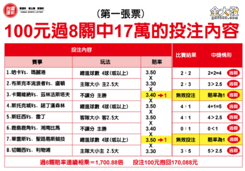 ▼串8關2場無效投注例子 - 運彩串關延賽怎麼算?