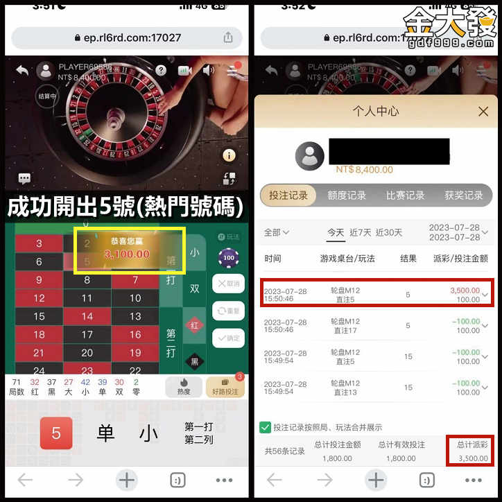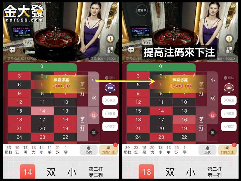 因為紅黑單雙大小的玩法賠率不高,只有1:1的澳門輪盤賠率,所以在下注的時候一定要提高注碼來玩,如果你平常都下100,那使用這個輪盤投注法的時候就要下500!以此類推~小編每局都下注500元,短短半小時就獲利18900!只需要一直下注紅、小、雙就可以了,透過長期無腦下注紅、小、雙真的可以獲利唷~輪盤的規律真的很好抓,投注之前一定要看一下紅黑單雙大小的比例!