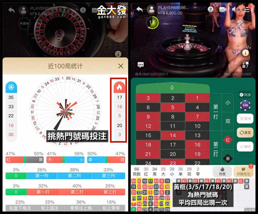 原來輪盤攻略也有冷熱門號碼區分~找到真人廳室幫你算出五個熱門號碼!向下圖這個輪盤廳的熱門號碼是17、18、5、20、3,這五個號碼是輪盤機率計算出最熱號碼。 - 每一局都投注這五個號碼