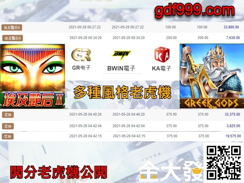 - 2022/10月 想在線上老虎機贏錢挑對台才是重點,掌握那麼多技巧比不上你選對台!魔龍傳奇、王者之劍、魔法石、黃金選擇都是金大發爆分機台,目前GR電子、BWIN2、ZG電子老虎機免費試玩。