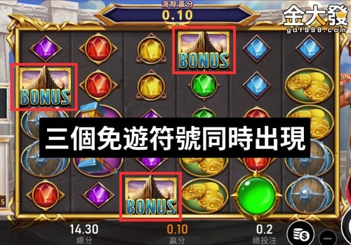 - 遊戲特色:無傳統賠付線(連線)、四個免遊符號觸發15轉免遊、有顯示累積彩池、可購買遊戲特色(強製免遊)