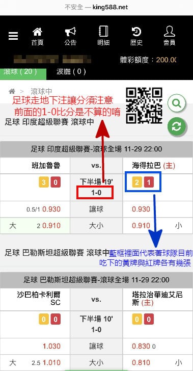 足球走地是所有賽事當中最特別的,想玩「讓分」走地的朋友,下注前記得忽略當下的比分,因為當下比分是不列入計算的。從你下注那一刻起,比分是從0:0下去計算。如果玩的是足球「大小」走地,前面的比分就有包含在內。